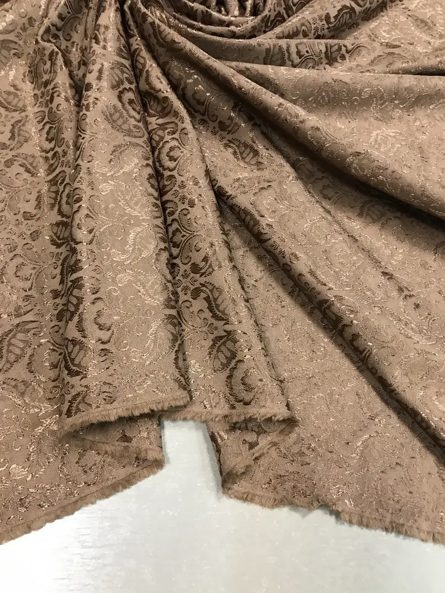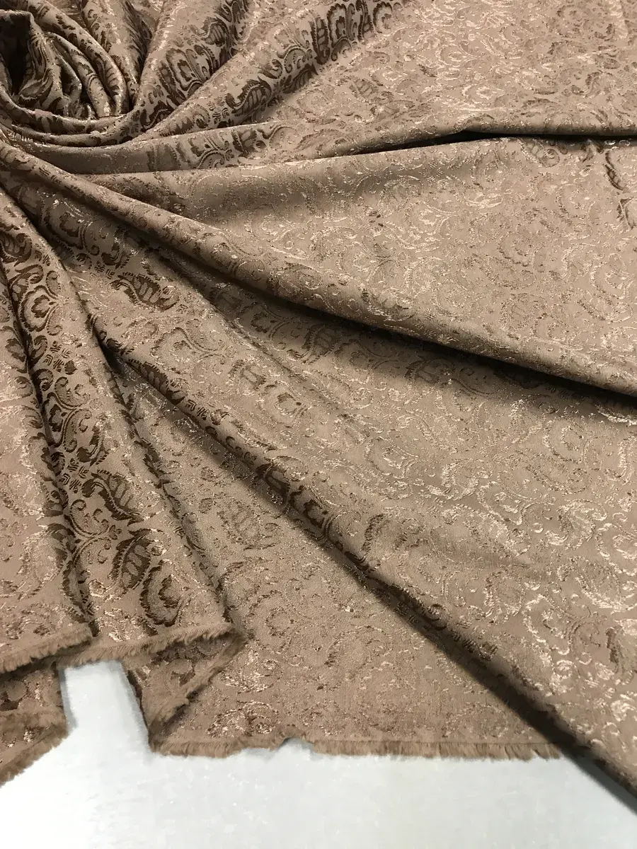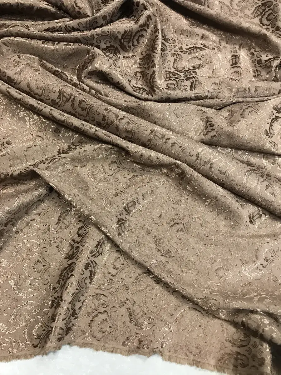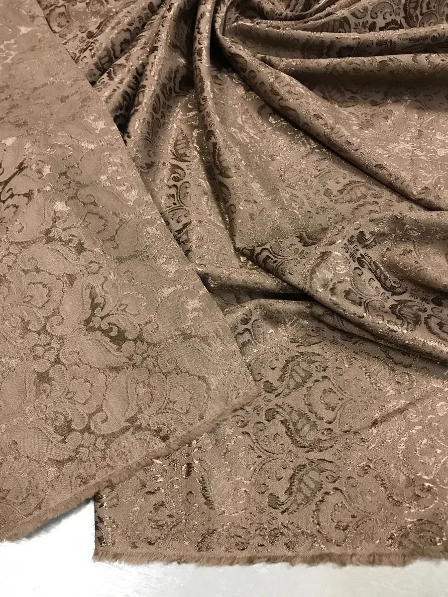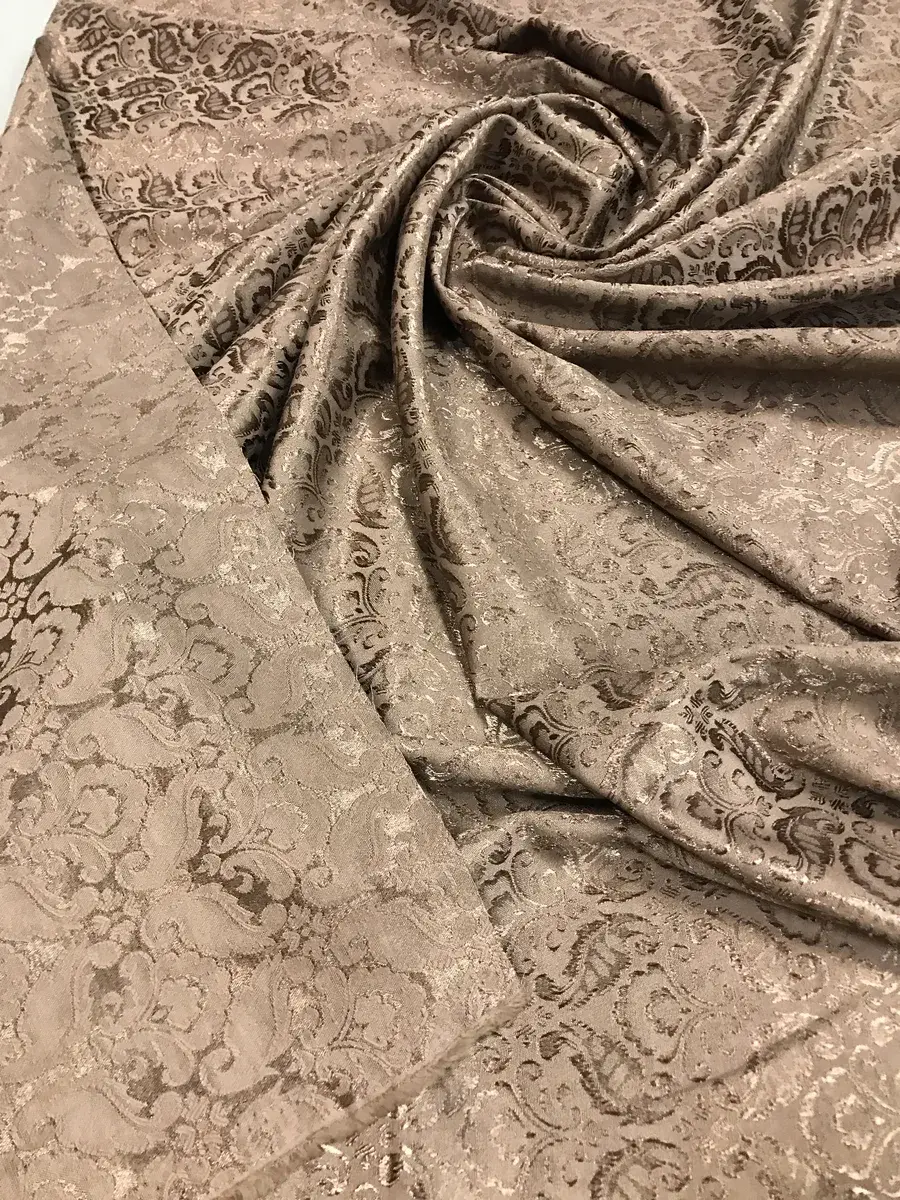 Жаккард — роскошная крупноузорчатая ткань, раппорт которой по основе содержит множество разнопереплетающихся нитей, имеет рельефный рисунок, который получается в результате сложного переплетения на плотной ткани, напоминает гобелен. У данного Жаккарда состав смесовый со спандексом. Он прочный, износостойкий, не линяет, не пилингуется, практичный, долговечный, мягкий, приятный тактильно, не мнётся, хорошо драпируется. Это костюмная ткань для женской одежды, также подойдёт для декорирования. Цвет ткани может отличаться от фактического из-за разного освещения и настроек экрана.