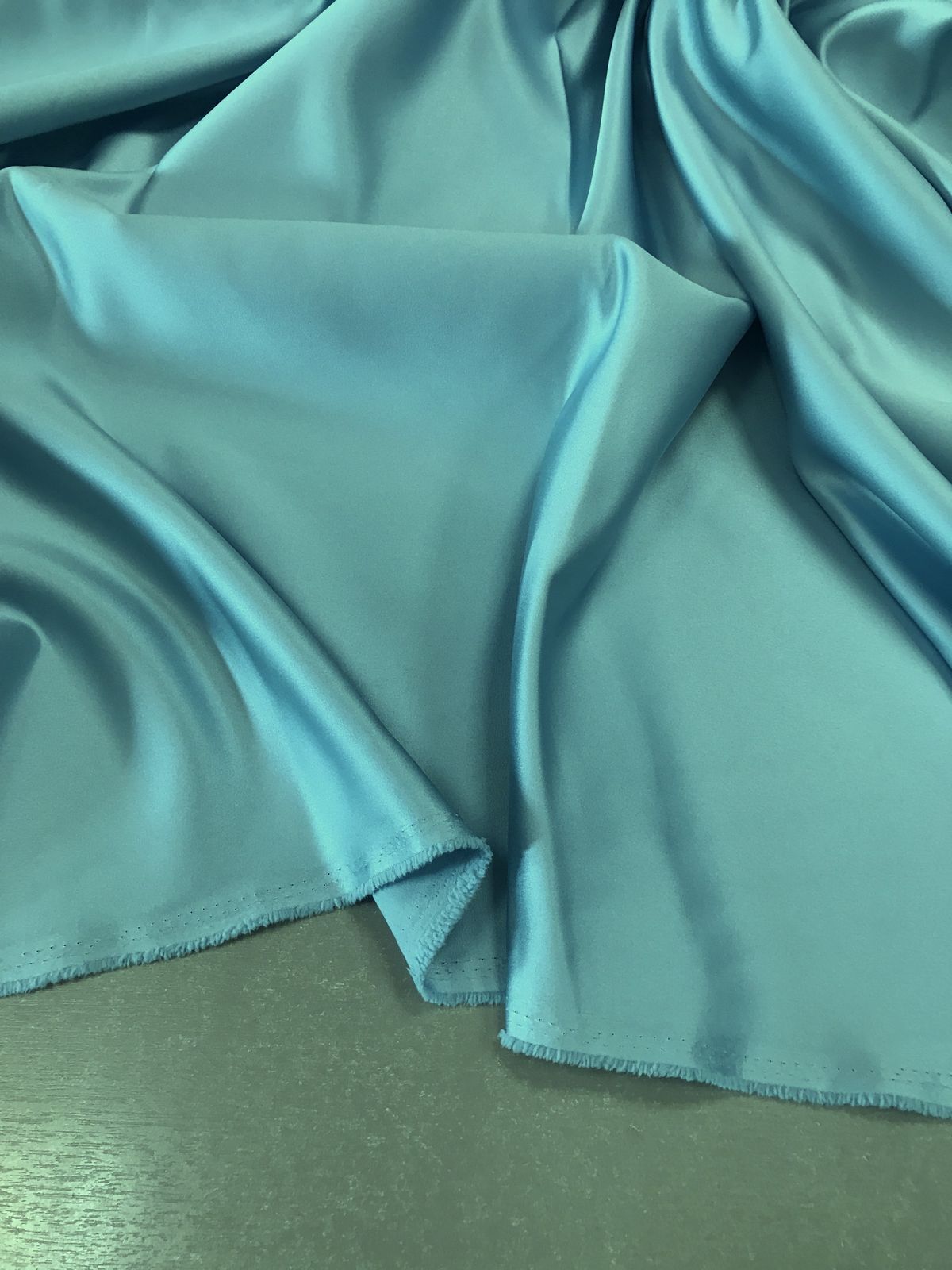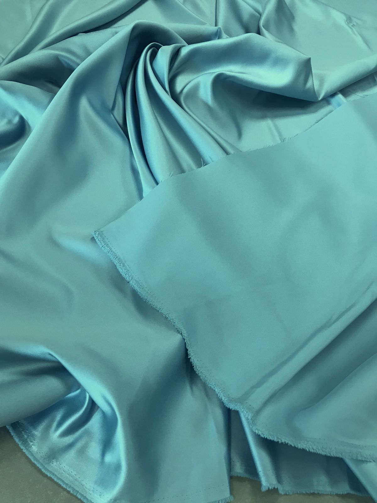 Цвет по пантону #14-4313 аквамарин. Прокатный атлас - это плотная ткань с благородным блеском. Применяется для пошива свадебных и вечерних платьев, нарядных топов и юбок, корсетов,пиджаков, изготовления драпировок и декора помещений. Ткань плотная, держит форму, не тянется, не просвечивает. Цвет ткани может отличаться от фактического из-за разного освещения и настроек экрана.