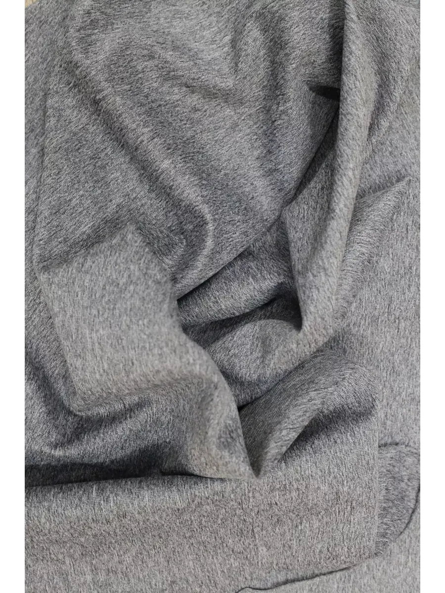 Трикотаж для спортивной одежды Эластан в сером меланжевом цвете, приятный тактильно, не мнётся, подходит для производства одежды для тренировок: спортивных футболок, маек, топов, лосин, велосипедок, спортивных брюк, спортивных кофт.
