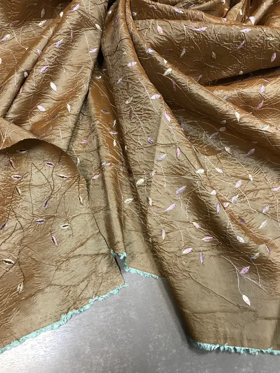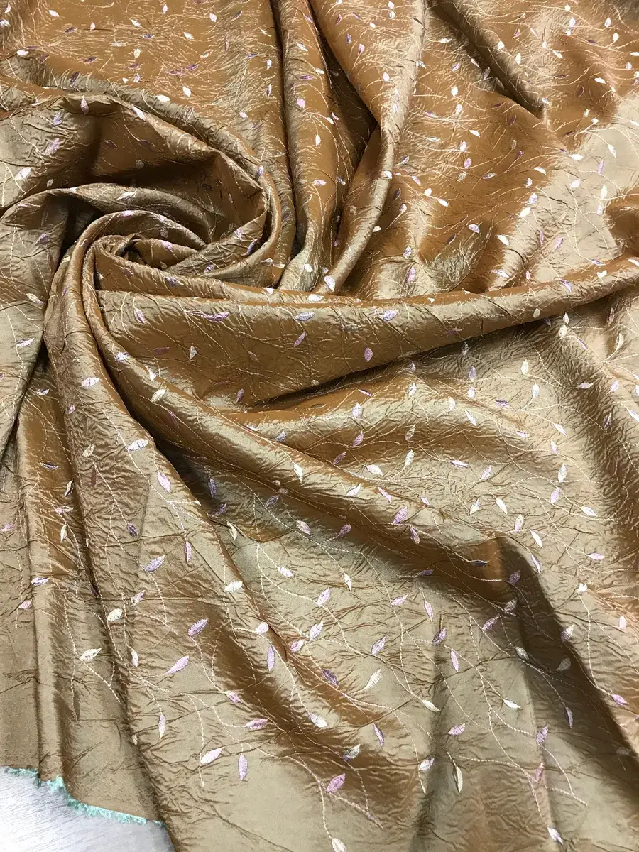 Ткань тафта жатая с вышивкой для женской одежды, красивая, эффектная, с блестящим отливом, прочная и исносостойкая. Тафта даёт возможность, создавать пышные силуэты и объёмные драпировки, не электолизуется, также подходит для пошива сценических костюмов и декора, штор, занавесок, чехлов, наволочек для подушек. Ширина вышивки 129см. Цвет ткани может отличаться от фактического из-за разного освещения и настроек экрана.