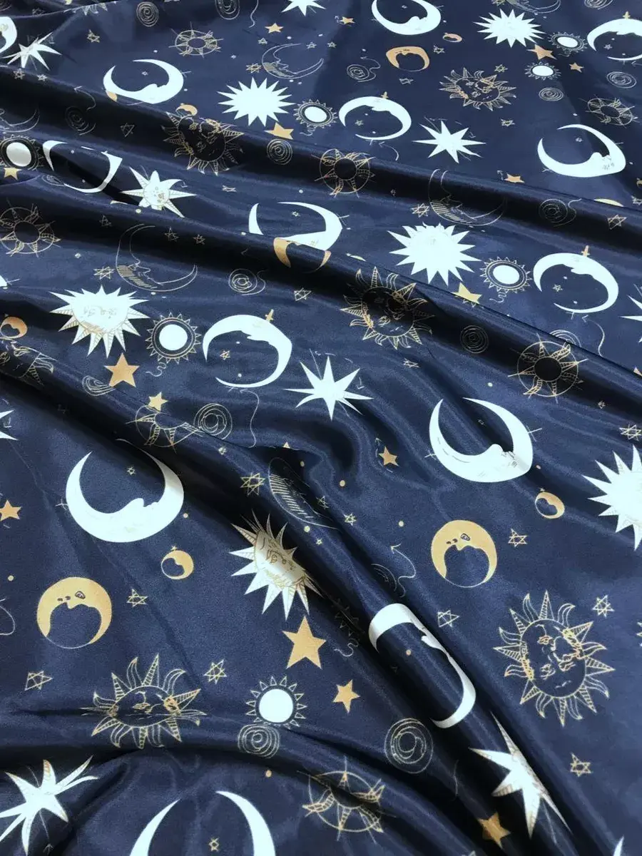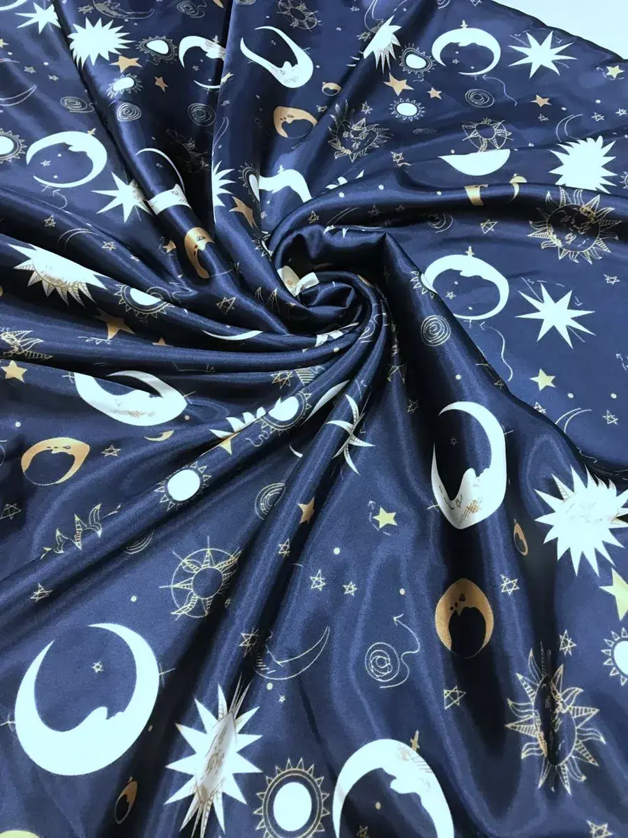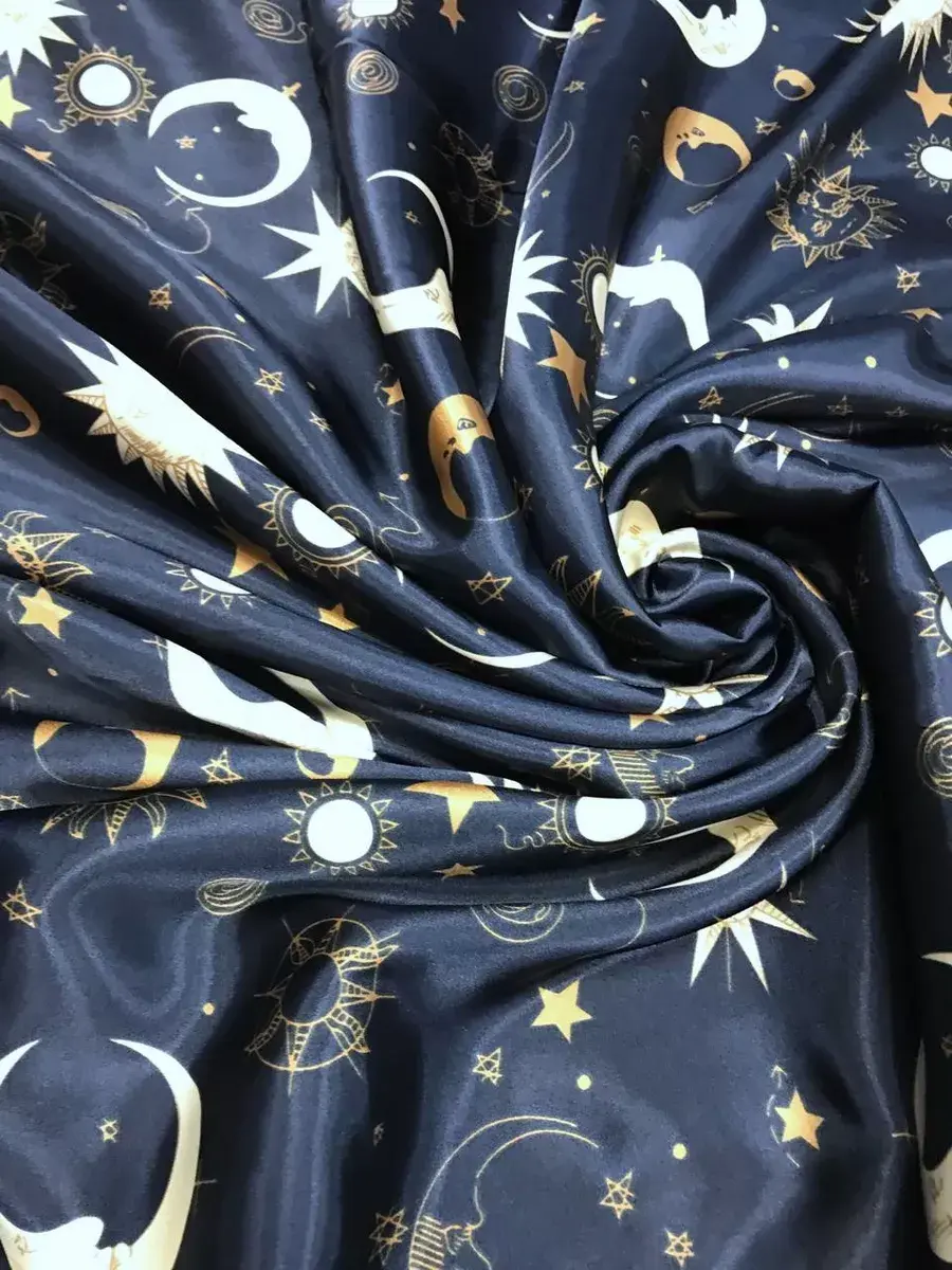 Атласная ткань Шармузи принт Ночь 115г/м2; отрез 1м*1.5м